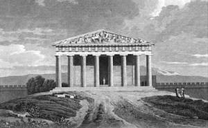 Reconstitution sur gravure publiée dans le « Recueil de cartes géographiques, plans, vues et médailles de l’ancienne Grèce relatifs au voyage du jeune Anarchasis » de Jean Jacques Barthélémy (vol. 8) en 1788. -un clic pour agrandir