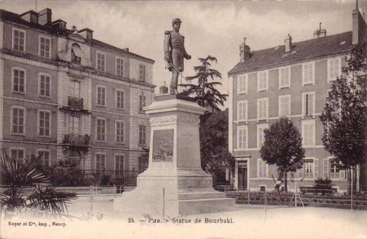 Il existait autrefois à Pau, une statue du général Bourbaki rendant hommage à ce Palois de naissance, Place Albert 1er.