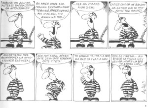 Nous présentons ici, avec son autorisation, quelques extraits de l’édition grecque de sa série « O issovítis », traduite en français sous le titre « Perpette », et parue en France aux éditions Glénat.