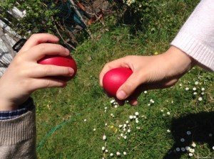 Il est de tradition de jouer en frappant un oeuf contre l’autre; le gagnant, celui dont l’oeuf ne s’est pas brisé, remporte l’oeuf du perdant.