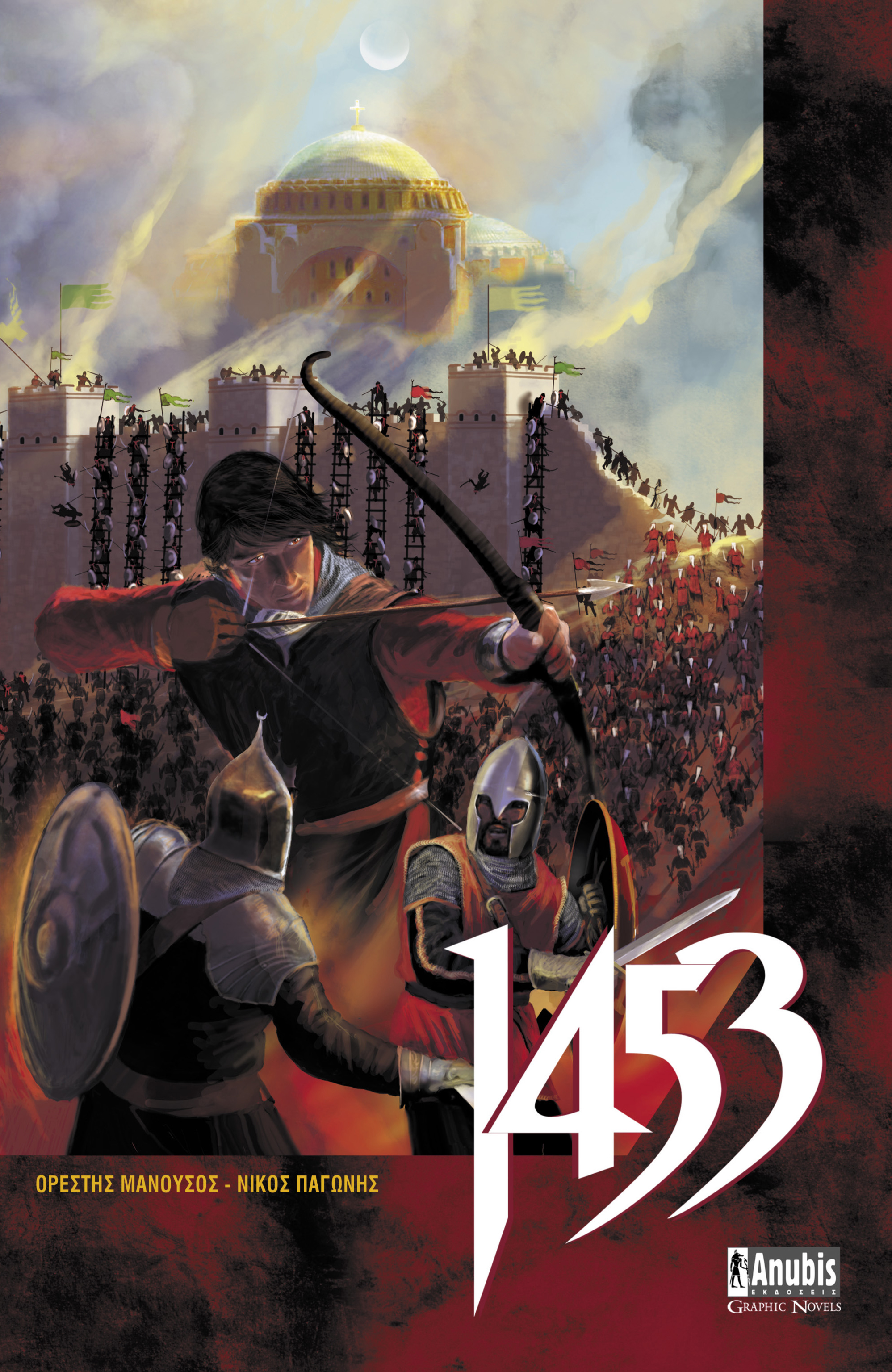 « 1453 », la couverture. Dans le fond, la basilique Sainte-Sophie de Constantinople, encore chrétienne, avant qu’elle ne soit transformée en mosquée par le conquérant de la ville. Avec l’autorisation des éditions Anubis – un clic pour agrandir.