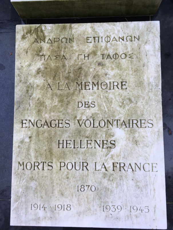 Le monument aux volontaires grecs morts pour la France du Cimetière du Père-Lachaise