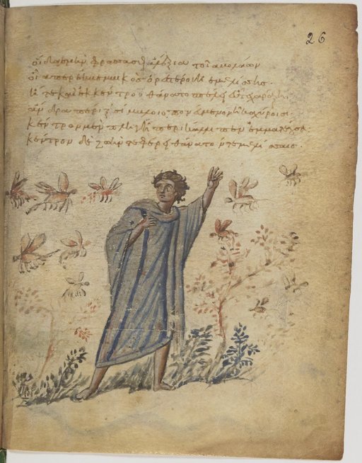 Supplément grec 247, fol. 26, Faune abeilles attaquant un homme