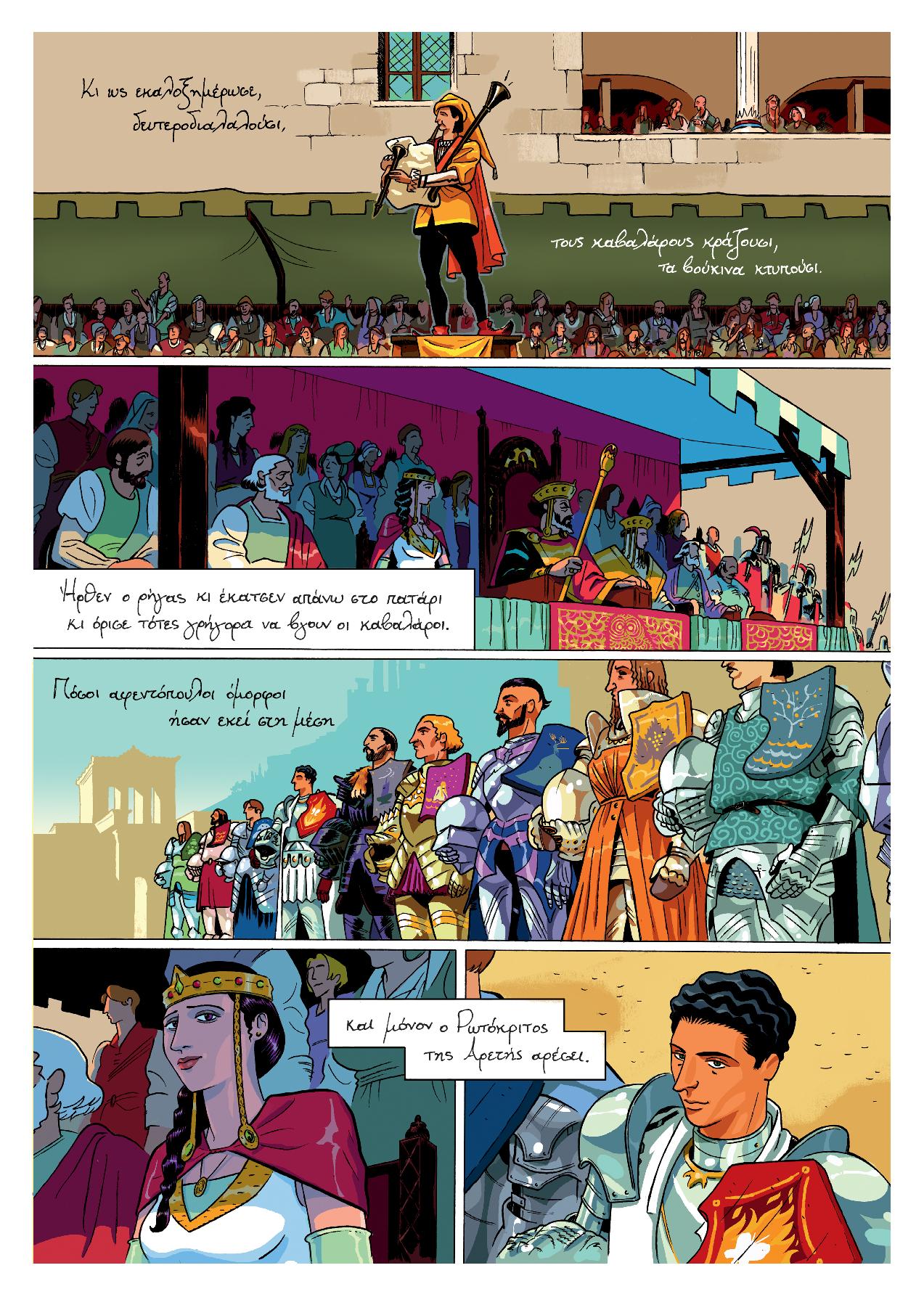 En 2016 paraissait « Erotokritos » : l’adaptation en bande dessinée, de l’œuvre du même nom, un roman en vers du Crétois Vitzentzos Kornaros (Vitzen’tzos Korna’ros/Βιτσέντζος Κορνάρος), que l’on date du début du 17ème siècle.